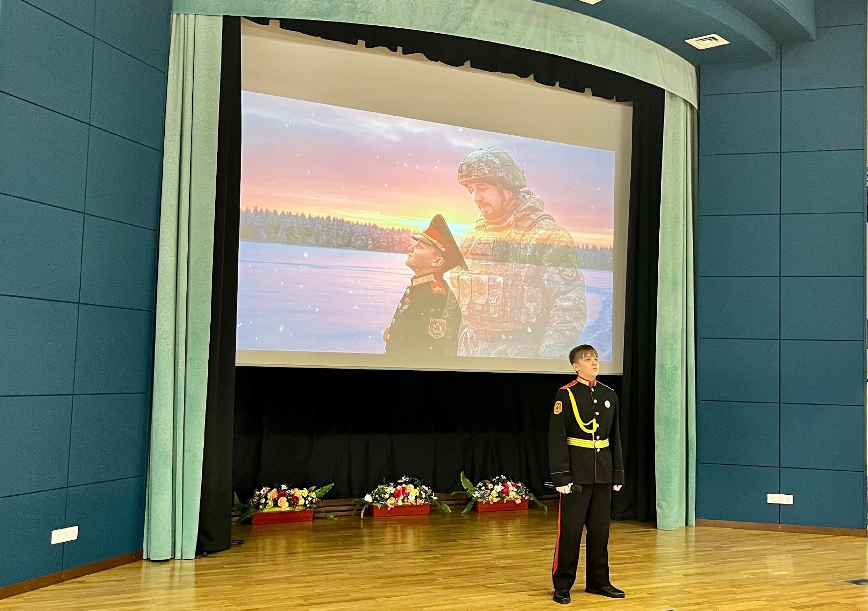 С танцевальными номерами выступил ансамбль современного танца «Соул», художественный руководитель Лариса Щербакова. Руководитель ансамбля песни и танца 35-ой Краснознаменной орденов Кутузова и Александра Невского Ракетной дивизии «Солдаты удачи» Жанна Машукова, а также ветеран войны в Афганистане, автор-исполнитель, фронтовой артист Сергей Пантелеев, певец, музыкант, композитор Сергей Степочкин подарили нам замечательные номера. Особенно трогательным стало выступление юного кадета Егора Бахарева с песней «Отец» — гимном памяти всех сынов, мужей и отцов. Его исполнение не оставило равнодушным никого в зале и вызвало слёзы.