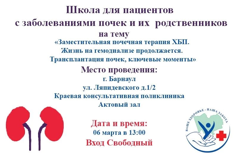 Вход свободный. Начало: в 13.00. Место проведения: г. Барнаул, ул. Ляпидевского д.1/2, Краевая консультативная поликлиника. Сбор в актовом зале (2 этаж).