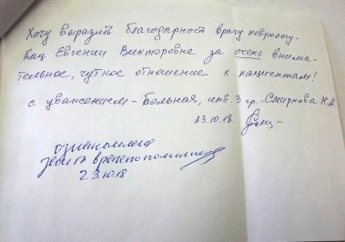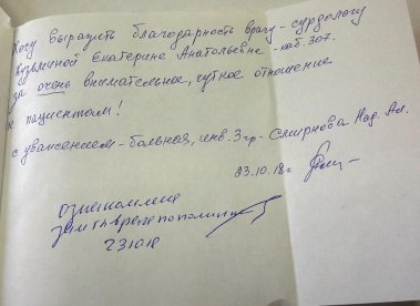 Отзывы пациентов в письмах за 2014-2018 г.
