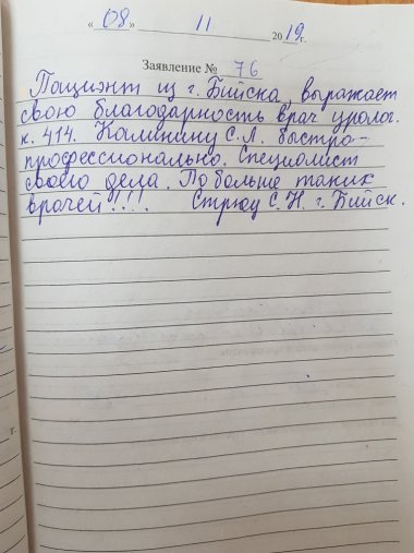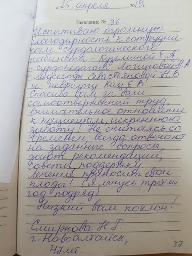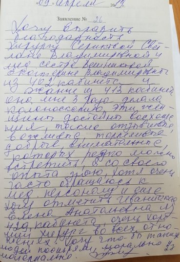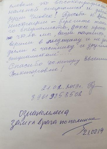 Отзывы пациентов в письмах за 2019 г.