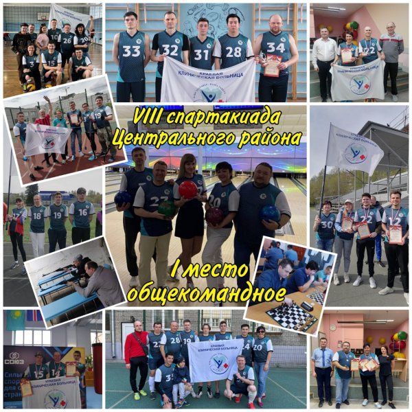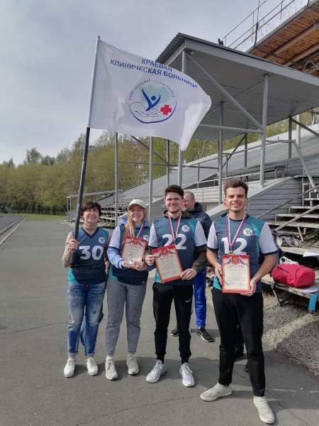 С 9 апреля по 29 мая проходили спортивные мероприятия в рамках VIII Спартакиады Центрального района г.Барнаула среди работников предприятий, организаций и учреждений по 12 видам спорта. В общекомандном зачете КГБУЗ Краевая клиническая больница заняла I место, а также первые места по волейболу, плаванию, легкой атлетике, арчеритагу и боулингу, второе место – по баскетболу 3Х3, шахматам, настольному теннису, дартсу и гиревому спорту.