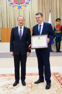 1 октября в Доме правительства Алтайского края состоялась торжественная церемония вручения государственных наград Российской Федерации и наград Алтайского края. Губернатор Алтайского края лично вручил высокие награды выдающимся специалистам нашего региона.